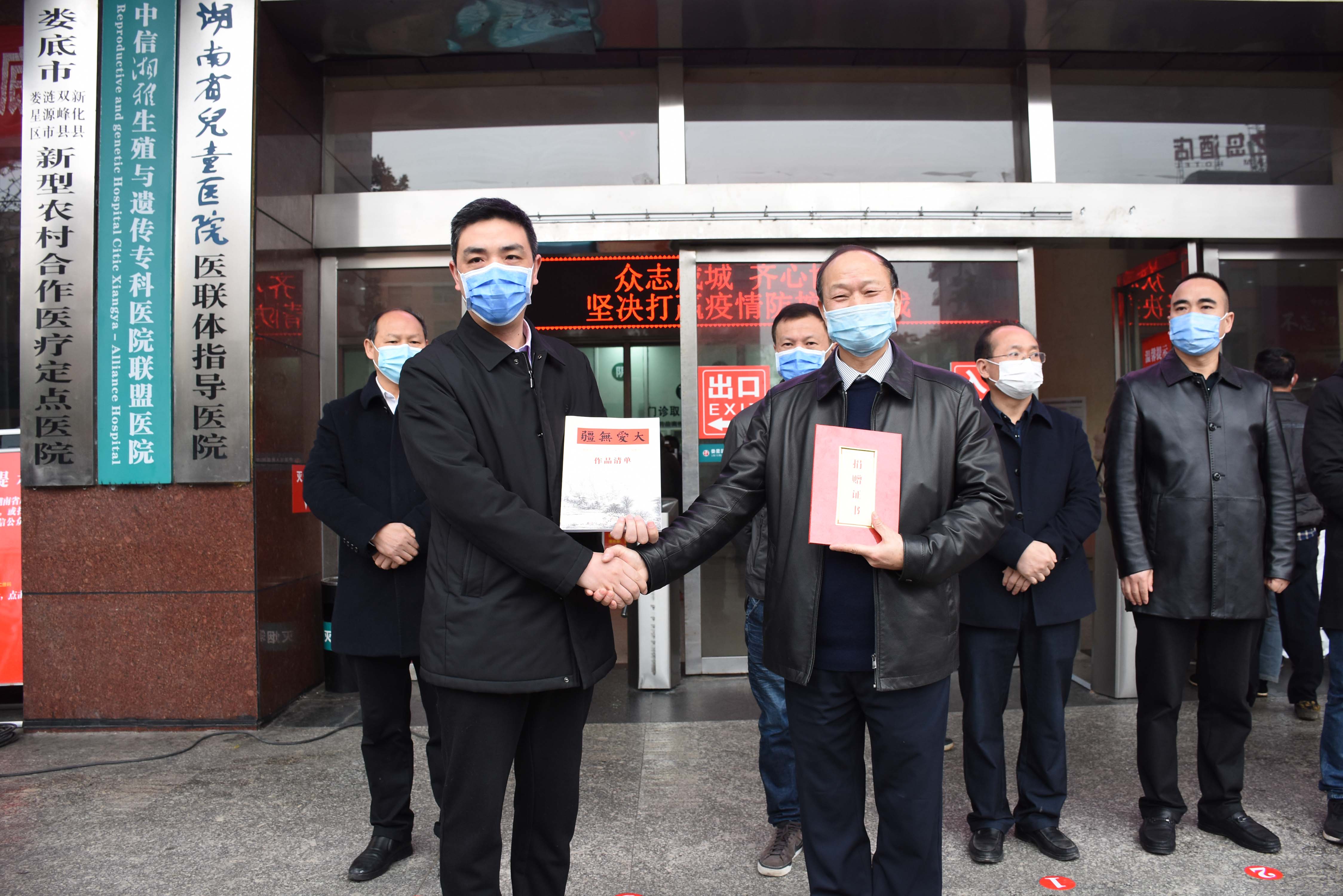 近日,由婁底市委宣傳部、市文聯(lián)指導(dǎo),婁星區(qū)委宣傳部、區(qū)文聯(lián)主辦,由市文化旅游產(chǎn)業(yè)融合發(fā)展促進(jìn)會(huì)等單位承辦的“藝”“醫(yī)”攜手 贊“醫(yī)”戰(zhàn)“疫”書畫作品公益捐贈(zèng)儀式在婁星區(qū)人民醫(yī)院舉行。湖南省婁底市建設(shè)工程有限公司將14位書畫大家創(chuàng)作的120幅書畫作品贈(zèng)與婁星區(qū)人民醫(yī)院,為向奮戰(zhàn)在疫情防控一線的醫(yī)務(wù)工作者表達(dá)崇高敬意。婁底市委宣傳部常務(wù)副部長(zhǎng)、市文化旅游產(chǎn)業(yè)融合發(fā)展促進(jìn)會(huì)會(huì)長(zhǎng)劉道陽等市區(qū)有關(guān)領(lǐng)導(dǎo)參加捐贈(zèng)儀式。 這批由魏華政、鄢福初、楊漢秋、楊金含等本土?xí)嫶蠹覄?chuàng)作的作品內(nèi)容豐富,凝聚著真誠心意。其中,書法作品書體多樣,內(nèi)容既有對(duì)扶傷濟(jì)世醫(yī)學(xué)精神的贊頌,也有中國(guó)傳統(tǒng)醫(yī)學(xué)名家的經(jīng)典名言,體現(xiàn)出對(duì)醫(yī)務(wù)工作者大愛精神的頌揚(yáng)。美術(shù)作品既有抗“疫”主題創(chuàng)作畫,也有山水畫、花鳥畫,通過對(duì)鯉魚、蟾蜍、青松、修竹、荷花等意象的描摹和春天美景的描繪,歌頌白衣勇士的高尚精神,表達(dá)戰(zhàn)勝疫情的信心。 婁星區(qū)衛(wèi)健局黨組成員、醫(yī)院院長(zhǎng)賀軍民代表醫(yī)院對(duì)書畫大家的捐贈(zèng)表示衷心感謝。他說道:“書畫大師們以筆為旗,通過書畫作品彰顯醫(yī)務(wù)工作者抗擊疫情的力量和溫度,醫(yī)院也將以此為契機(jī),更加堅(jiān)定救死扶傷的信念,切實(shí)增強(qiáng)治病救人的本領(lǐng)” 據(jù)了解,自婁星區(qū)啟動(dòng)重大突發(fā)公共衛(wèi)生事件一級(jí)響應(yīng)以來,婁星區(qū)人民醫(yī)院調(diào)集全院力量,組建8支醫(yī)療應(yīng)急小分隊(duì),奮戰(zhàn)在全區(qū)密切接觸者轉(zhuǎn)運(yùn)、兩個(gè)集中隔離觀察點(diǎn)795位隔離者的管理、高鐵南站預(yù)檢分診轉(zhuǎn)診、婁星區(qū)和萬寶新區(qū)160家企業(yè)核酸采樣、院內(nèi)發(fā)熱門診、住院隔離救治等疫情防控戰(zhàn)線上,截至4月初,全院實(shí)現(xiàn)醫(yī)務(wù)人員零感染、安全管理零事故的工作目標(biāo)。同時(shí),醫(yī)院支援湖北黃岡醫(yī)療隊(duì)隊(duì)員邱春;支援婁底市新冠肺炎定點(diǎn)醫(yī)院的4名醫(yī)務(wù)人員李碩賢、楊衛(wèi)東、吳永根、劉鐵強(qiáng)也光榮凱旋。 |