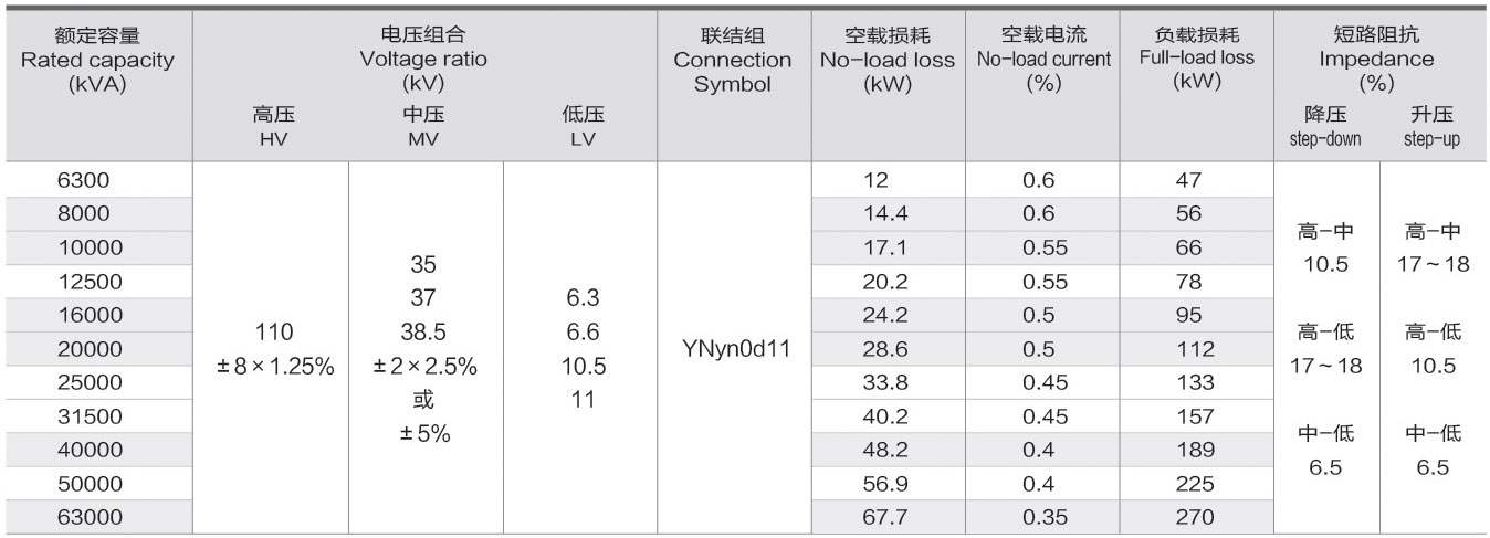 110kV電力變壓器鐵芯采用優(yōu)質(zhì)硅鋼片,多級階梯積而成。具有低損耗、低噪聲、抗短路能力強(qiáng)等特點(diǎn)。已廣泛應(yīng)用于各變電所、發(fā)電廠,受到用戶的一致好評。SZ11-63000/110變壓器通過國家全套型式試驗(yàn)及突發(fā)短路試驗(yàn),SZ11-31500/110變壓器通過國際著名電器實(shí)驗(yàn)室荷蘭KEMA認(rèn)證,并通過國家機(jī)械部、電力部的聯(lián)合新產(chǎn)品鑒定。 110kV雙繞組無勵(lì)磁調(diào)壓電力變壓器