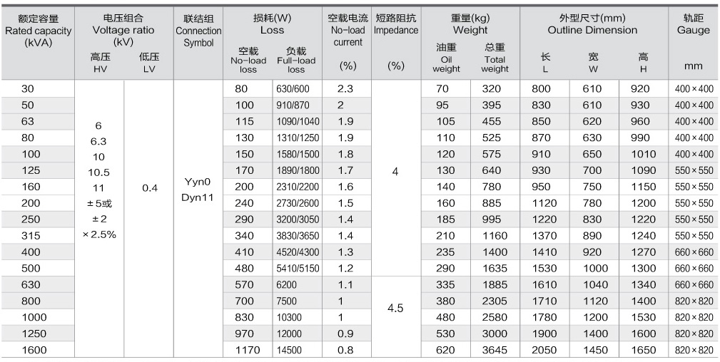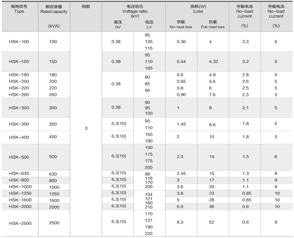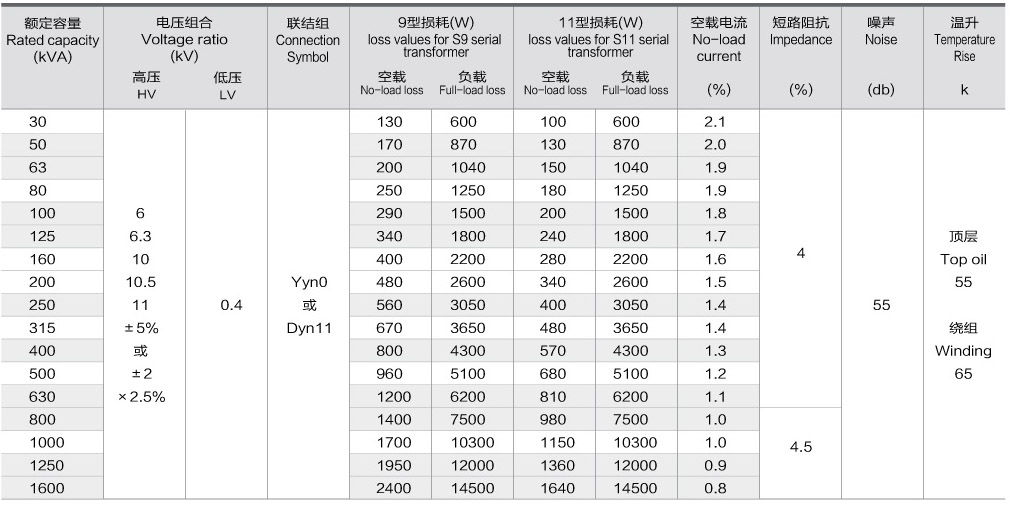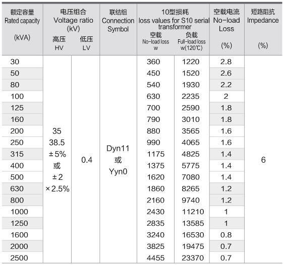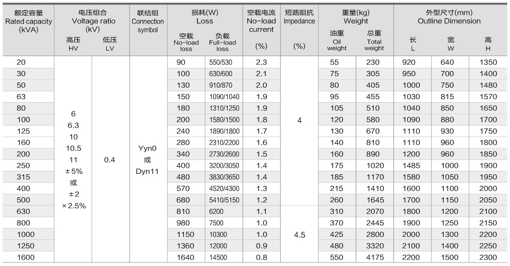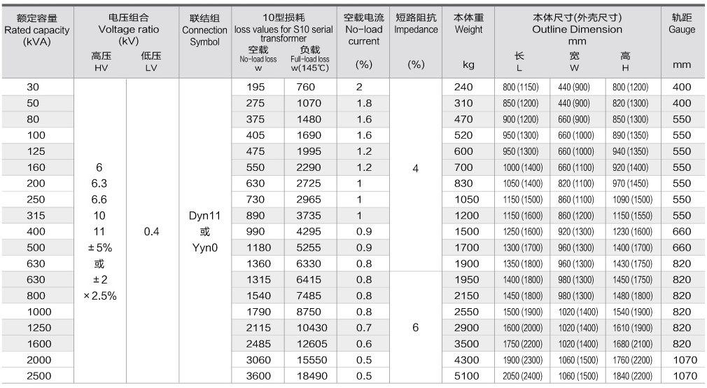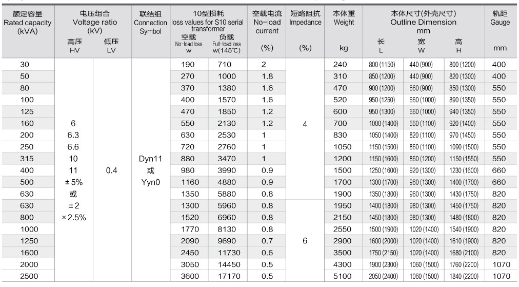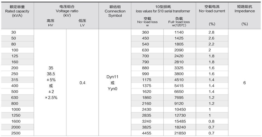 ●熱壽命長,過載運(yùn)行能力強(qiáng),在120%額定容量下長期過載運(yùn)行,無強(qiáng)迫風(fēng)冷下可長期滿負(fù)荷運(yùn)行; 浸漬式h級絕緣10kV級無勵磁調(diào)壓配電變壓器